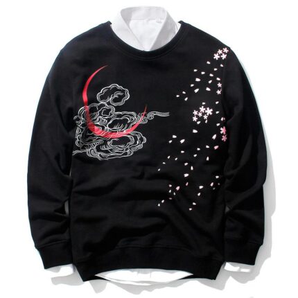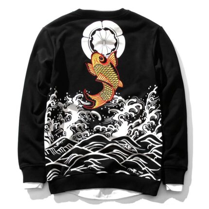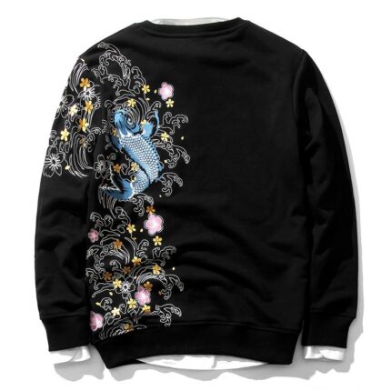 Floral Koi Carp Embroidery Sweatshirt