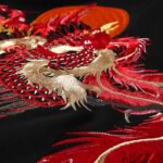 The Phoenix is sometimes depicted together with a dragon to symbolize empress. It represents female virtues, such as charm and beauty. Our embroidered fire phoenix is gentle, soft and beautiful. It us noble, elegant and preeminent in any respect.