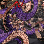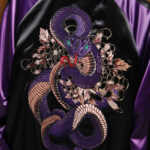 Violet Viper is a bold statement piece featuring a coiled serpent embroidered in rich purples and metallic tones. Crafted from premium satin with a sleek black and violet finish, it blends danger and elegance. Perfect for those who walk the edge — fierce, fearless, and unapologetically stylish.